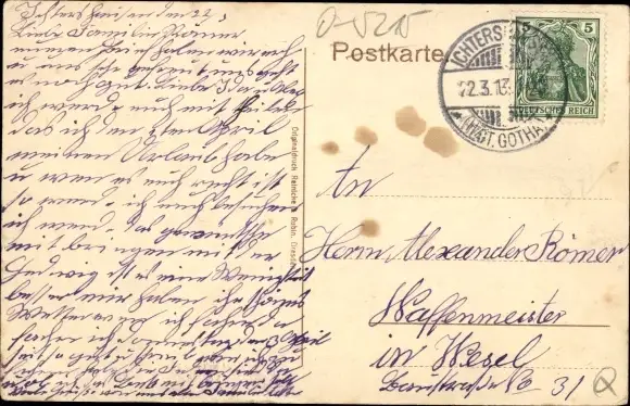 Zustand, siehe Scan, gelaufen, 1913 - ca 14 cm X 9 cm