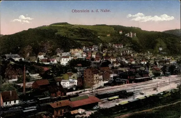 Ak Idar Oberstein Nahe, Totalansicht der Stadt, Bahnhof