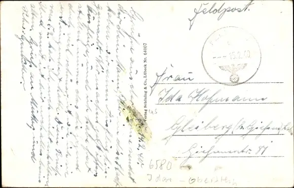 Zustand, siehe Scan, gelaufen, 1940 - ca 14 cm X 9 cm