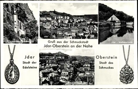 Ak Idar Oberstein an der Nahe, Weiherschleife, Felsenkirche, Totalansicht