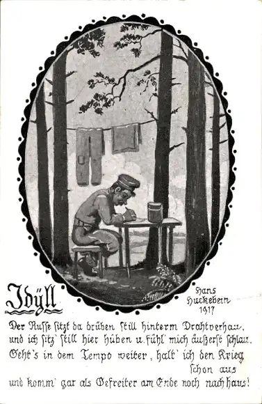 Ak Idyll, Hans Huckebein, Der Russe sitzt da drüben still hinterm Drahtverhau