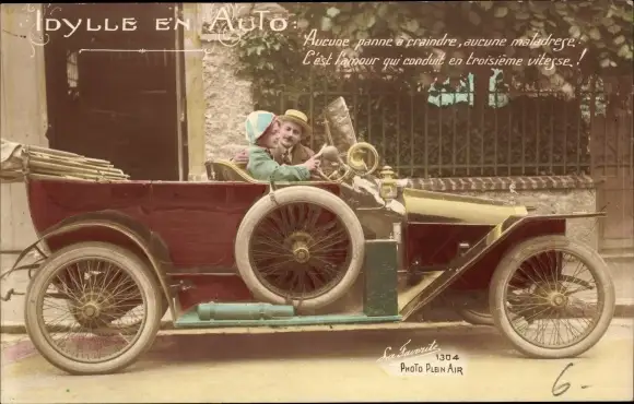 Ak Idylle en Auto, Liebespaar in einem Automobil
