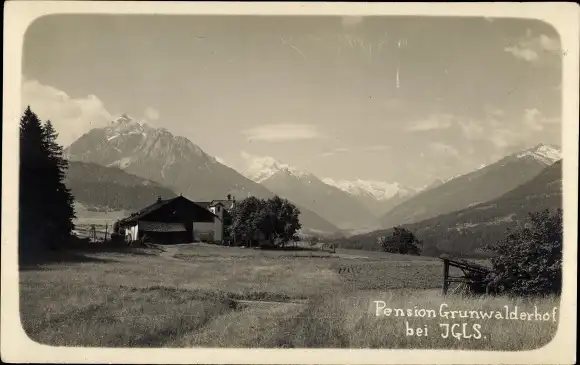 Ak Igls Innsbruck in Tirol, Ansicht Pension Grunwalderhof mit Bergpanorama