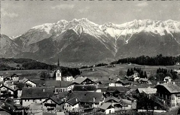 Ak Igls Innsbruck in Tirol, Gesamtansicht, Nordkette