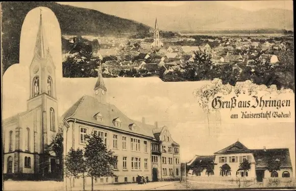 Ak Ihringen am Kaiserstuhl, Totalansicht, Kirche
