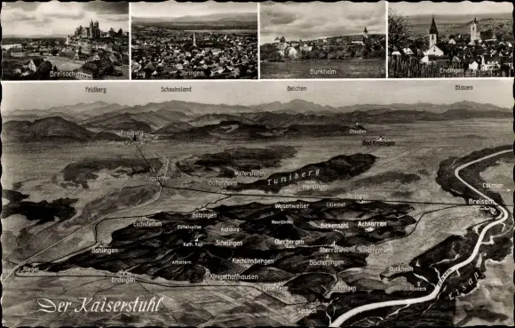 Ak Ihringen am Kaiserstuhl, Totalansicht, Landkarte