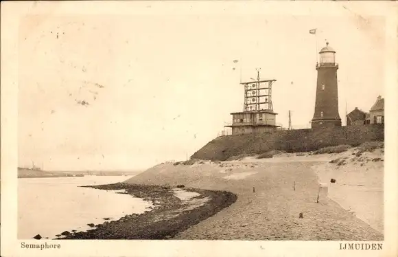 Ak Ijmuiden Nordholland, Leuchtturm, Semaphor