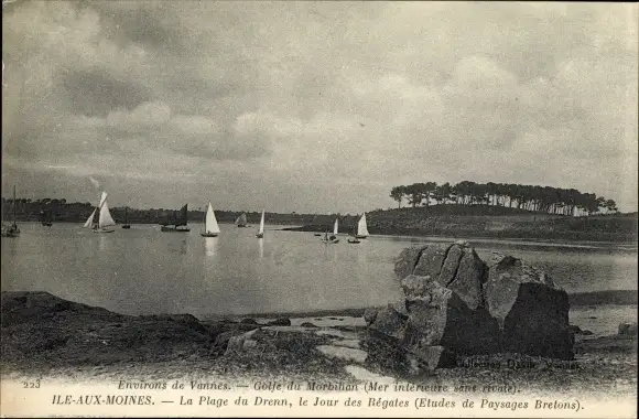 Ak Île aux Moines Morbihan, Drenn Beach, Regattatag, bretonische Landschaftsstudien