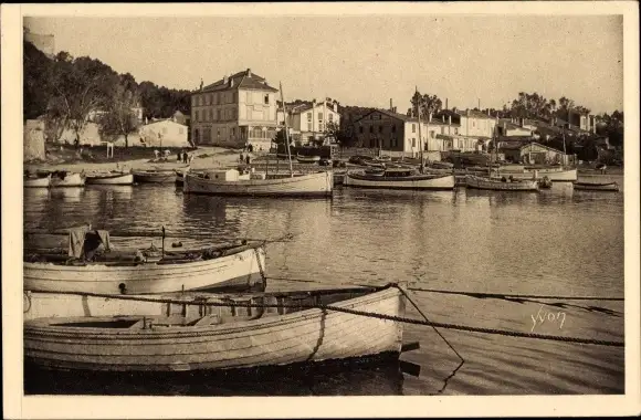Ak Ile de Porquerolles Iles d'Hyères Var, Panorama vom Jetee aus aufgenommen