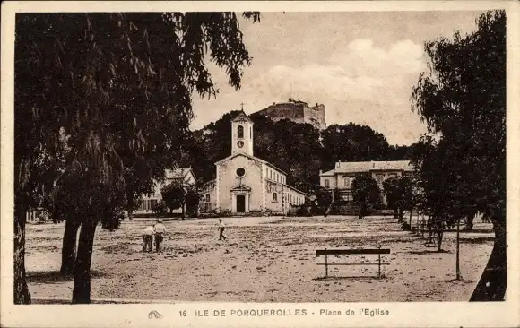 Ak Île de Porquerolles Îles d’Hyères Var, Place de l'Eglise, Kirche