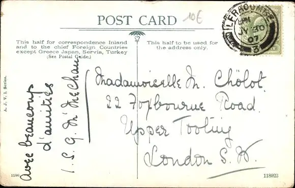 Zustand, siehe Scan, gelaufen, 1907 - ca 14 cm X 9 cm