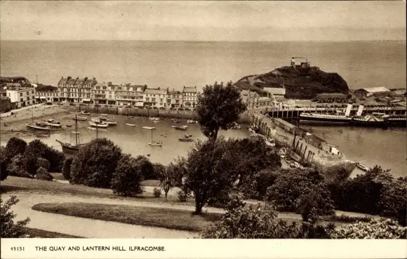 Ak Ilfracombe Devon England, The Quay and Lantern Hill