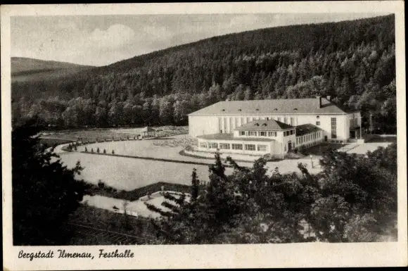 Ak Ilmenau in Thüringen, Blick zur Festhalle, Wald