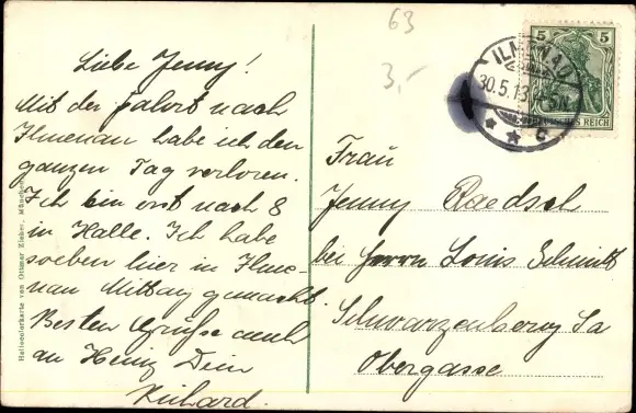 Zustand, siehe Scan, gelaufen, 1913 - ca 14 cm X 9 cm