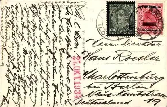 Zustand siehe Scan, gelaufen, 1934 - ca 14 cm X 9 cm