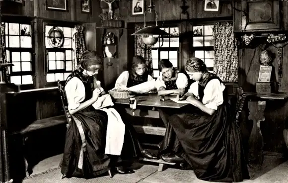 Ak Im Herrgottswinkel, Schwarzwald, Frauen in Trachten, Frau stickt
