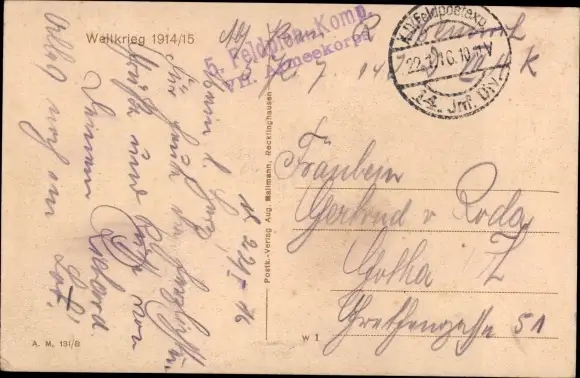 Zustand, siehe Scan, gelaufen, 1916 - ca 14 cm X 9 cm