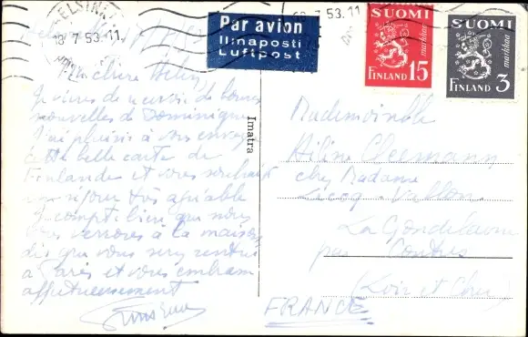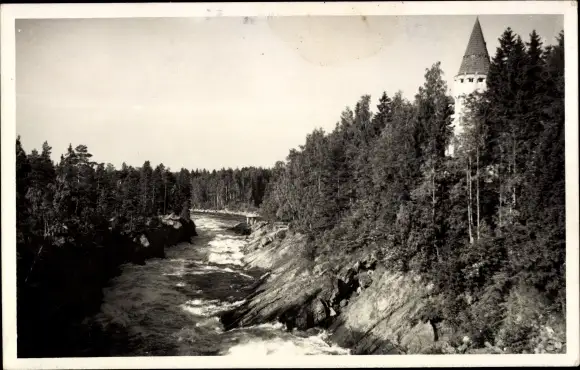 Ak Imatra Finnland, Flußbiegung, Turm, Wald