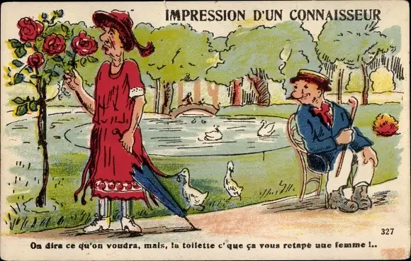 Ak Impression d'un Connaisseur, Rosen, Teich, Mann auf der Bank, Enten