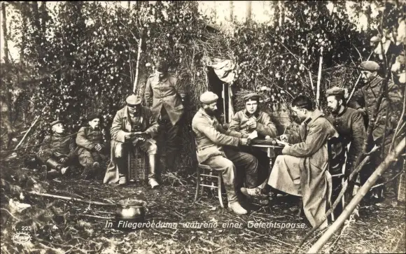 Ak In Fliegerdeckung während einer Gefechtspause, Soldaten beim Kartenspiel