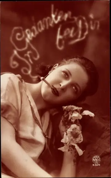 Ak In Gedanken bei Dir, Portrait einer Frau mit Zigarette