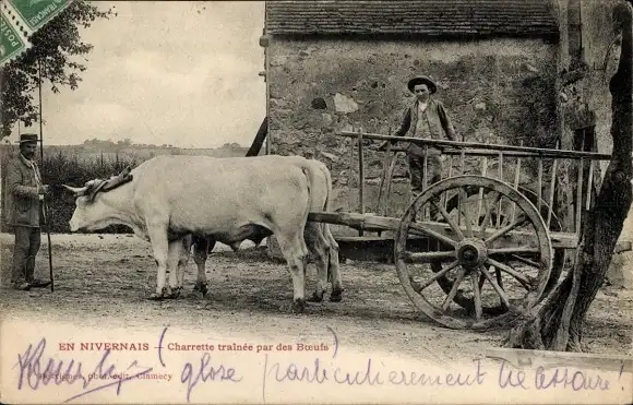 Ak In Nivernais wird Karren von Ochsen gezogen