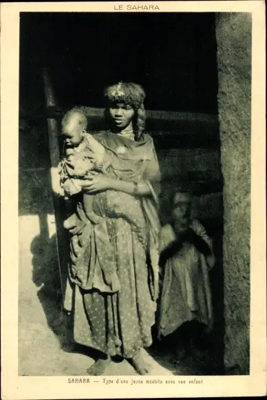 Ak In Salah Sahara Algerien, Mutter mit Kindern
