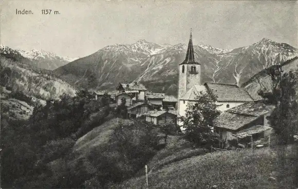 Ak Inden Kanton Wallis Schweiz, Gesamtansicht, Kirche