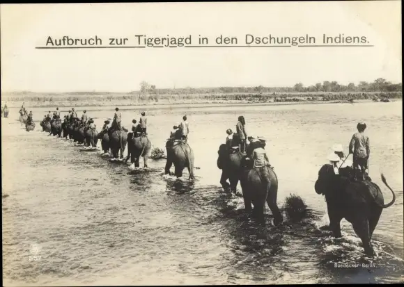 Ak Indien, Aufbruch zur Tigerjagd, Elefanten