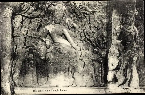 Ak Indien, Bas-reliefs d'un Temple