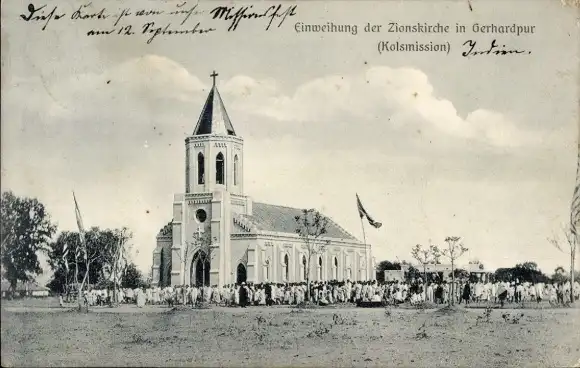 Ak Indien, Einweihung der Zionskirche in Gerhardpur, Missionskirche, Kolsmission