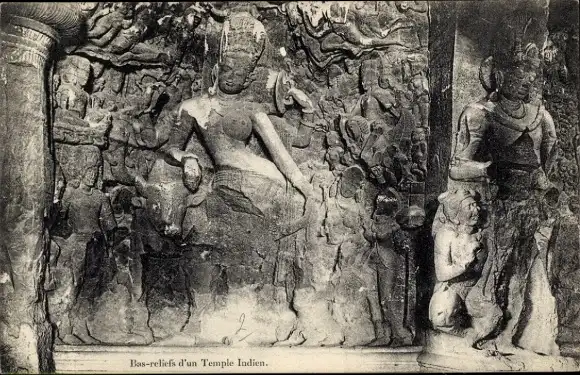 Ak Indien, Flachreliefs eines Tempels