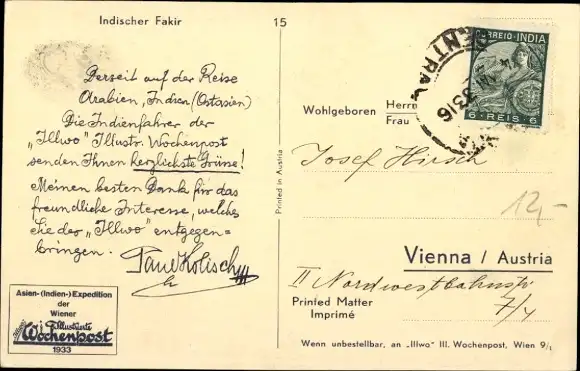 Zustand, siehe Scan, gelaufen, 1933 - ca 14 cm X 9 cm