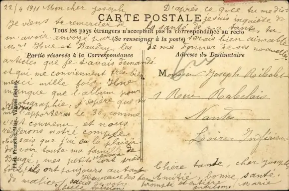 Zustand, siehe Scan, gelaufen, 1911 - ca 14 cm X 9 cm