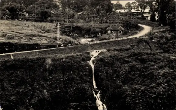 Ak Indonesien, Teilansicht, Wasserfall, Abhang