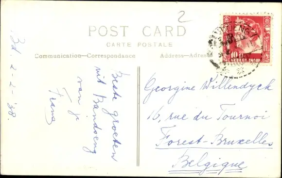 Zustand, siehe Scan, gelaufen, 1938 - ca 9 cm X 14 cm