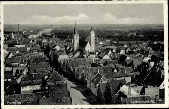 Ak Ingolstadt an der Donau Oberbayern, Gesamtansicht, Kirchturm