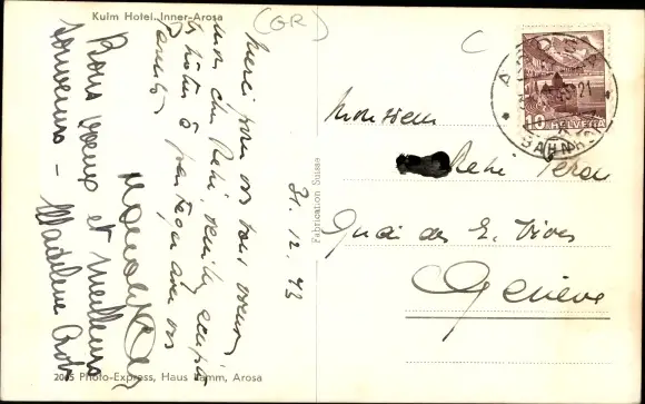 Ak Innerarosa Arosa Kt. Graubünden, Kulm Hotel, Winter