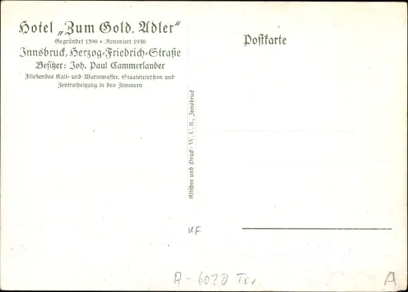Zustand, siehe Scan, ungelaufen- Inh. Joh. Paul Cammerlander - ca 11 cm X 15 cm