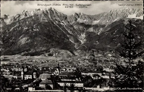 Ak Innsbruck in Tirol, Gesamtansicht, Brandjoch, Seegruben, Nordkette