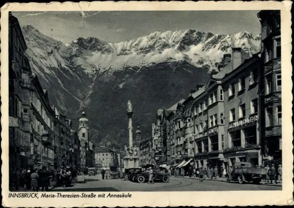 Ak Innsbruck in Tirol, Maria Theresien Straße mit Annasäule