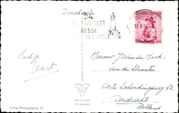 Zustand, siehe Scan, gelaufen, 1956 - ca 14 cm X 9 cm