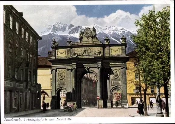 Ak Innsbruck in Tirol, Triumphpforte mit Nordkette