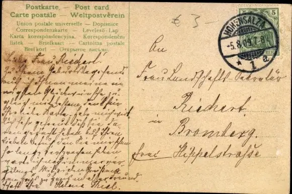 Zustand, siehe Scan, gelaufen, 1909 - ca 14 cm X 9 cm
