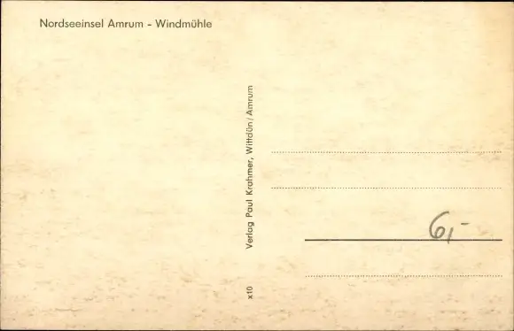 Ak Insel Amrum in Nordfriesland, Windmühle