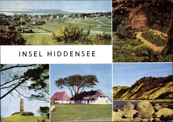 Ak Insel Hiddensee in der Ostsee, Leuchtturm, Fischerhäuser, Steilküste