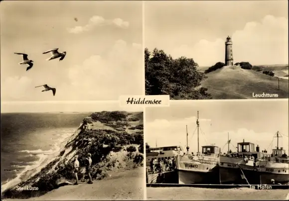 Ak Insel Hiddensee in der Ostsee, Leuchtturm, Im Hafen, Steilküste