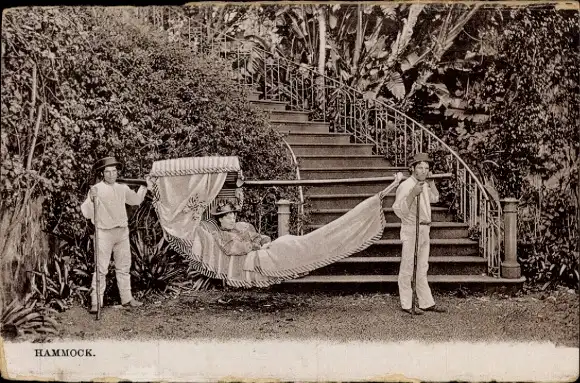 Ak Insel Madeira Portugal, Hammock, Dame getragen in einer Sänfte