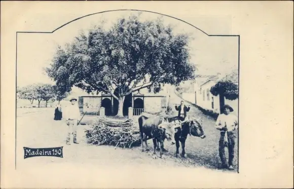 Ak Insel Madeira Portugal, Holzschlitten, Rinderfuhrwerk
