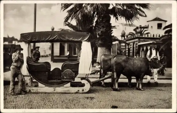 Ak Insel Madeira Portugal, Ochsenschlitten